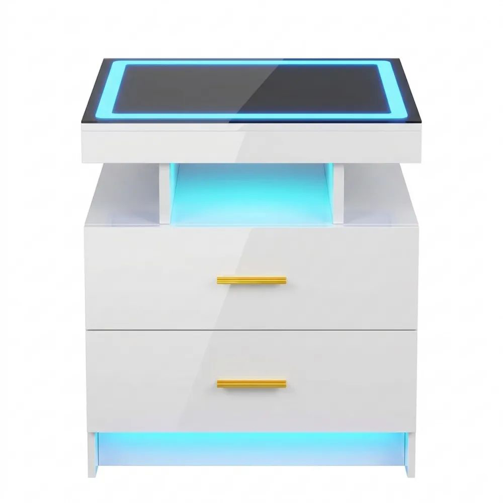 Nachttisch mit LED-Beleuchtung und Ladefunktion, 2 Schubladen, für Schlafzimmer und Wohnzimmer