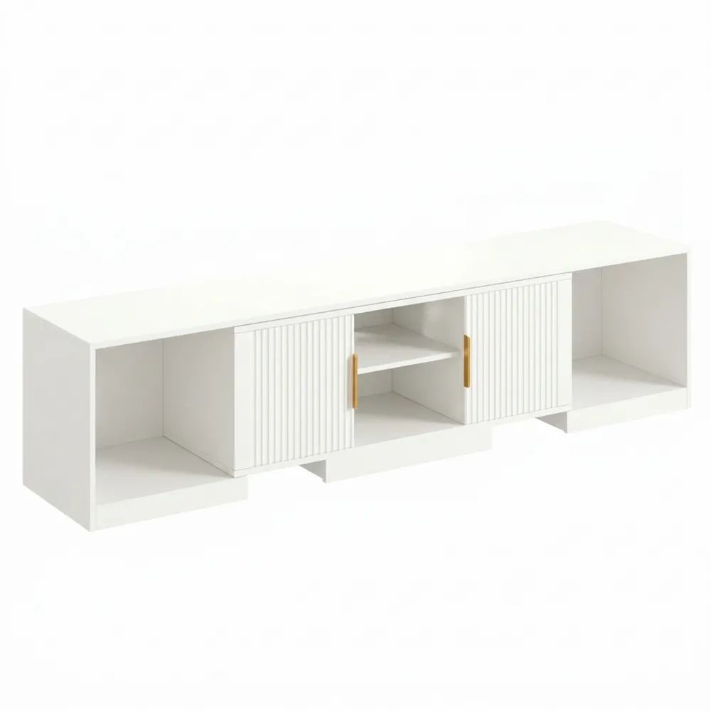 Verstellbarer TV-Schrank mit Türen, moderne TV-Konsole in Weiß